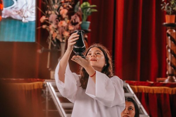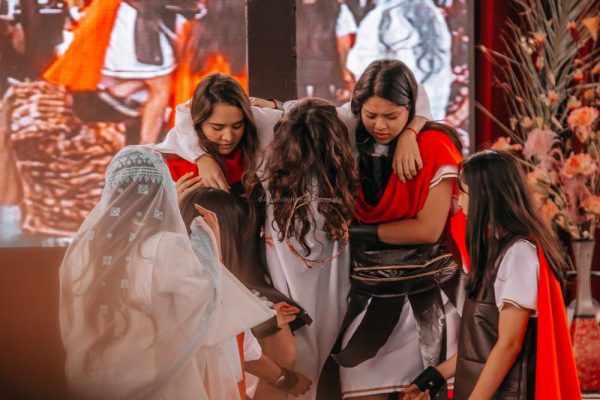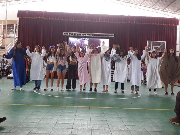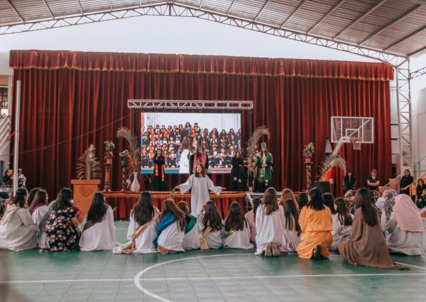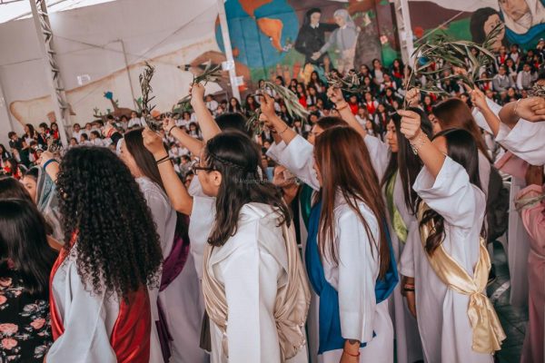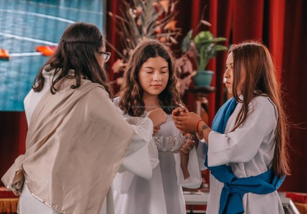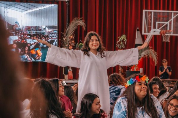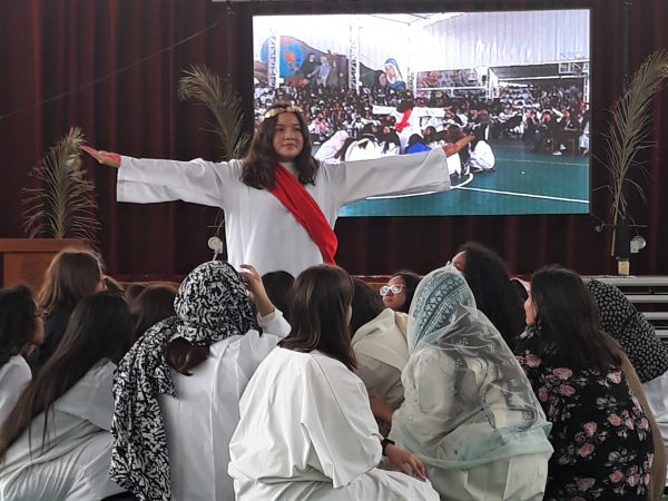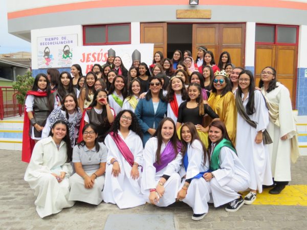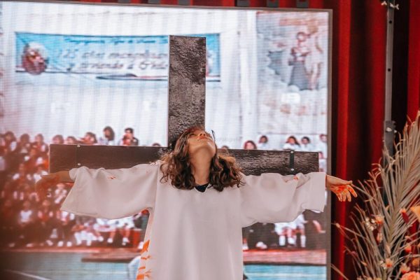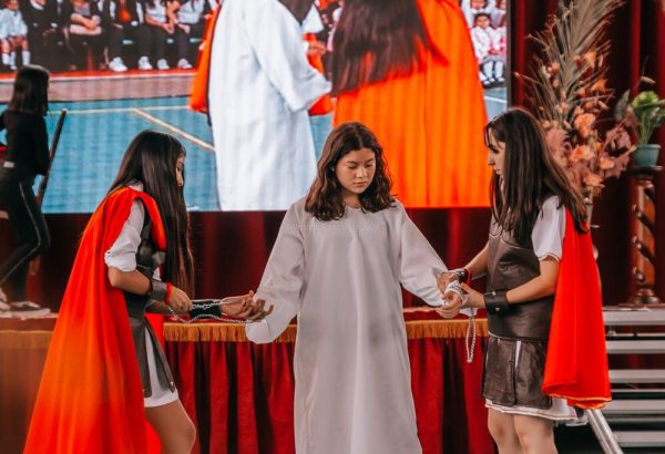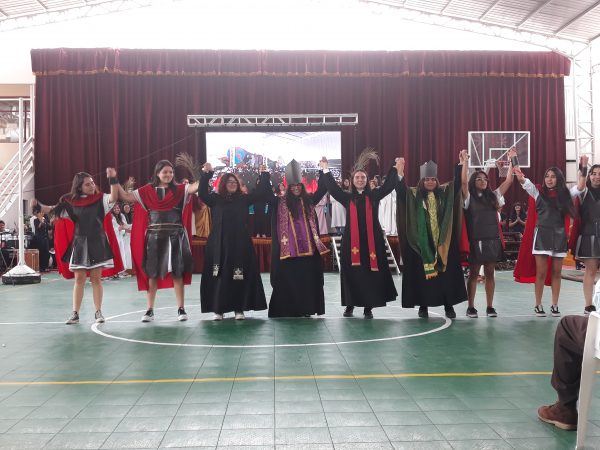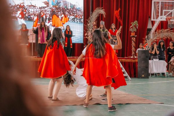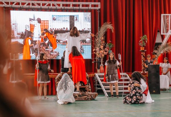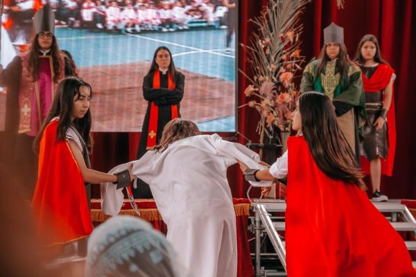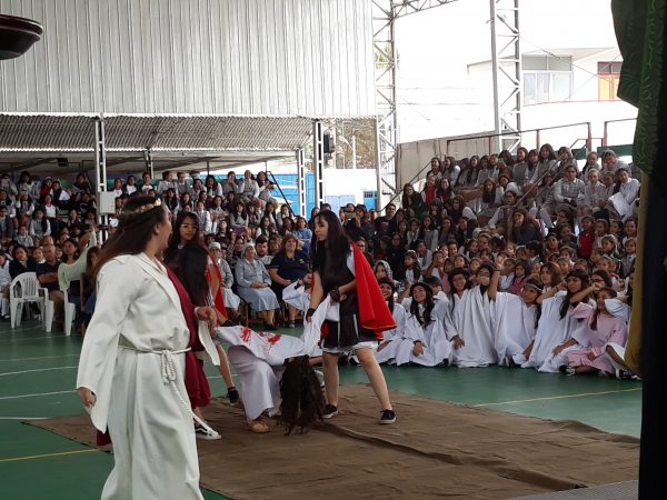 Este lunes toda la comunidad del Colegio Santa Ana celebró Pascua de Resurrección con una espectacular puesta en escena de los cuartos medios A y B de la obra musical Jesucristo Superestrella; quienes bajo la organización de la profesora María José Pacheco, estas alumnas dieron vida a este musical sorprendiendo con su gran nivel a grandes y chicas.
