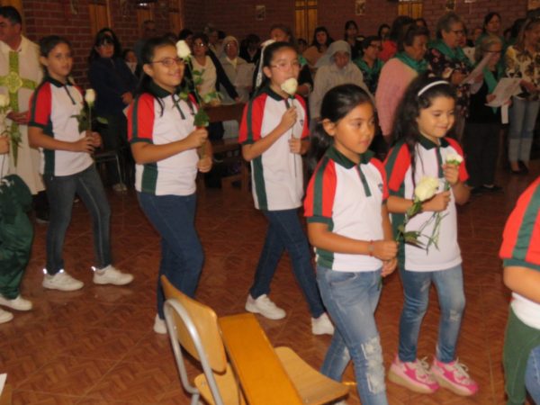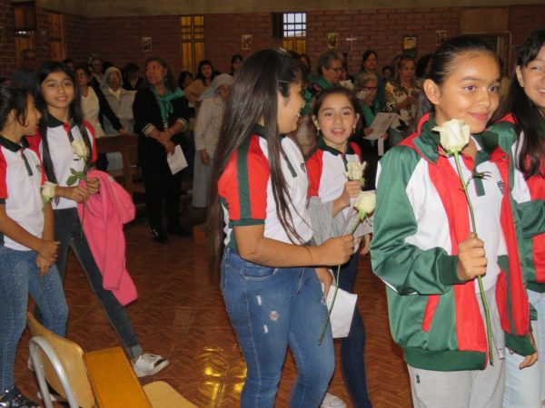 Por ello, la comunidad del Colegio Italiano Santa Ana se reunió el día de ayer en la Capilla Rosa Gattorno ubicada en Cerro La Cruz donde se celebró una misa en su nombre, con la destacada participación de nuestros grupos de niñas Rositas e Infancia Misionera, quienes lucieron sus nuevas chaquetas y poleras que las identifican con estas agrupaciones y cuyo propósito es perpetuar el legado que dejó Madre Rosa Gattorno.