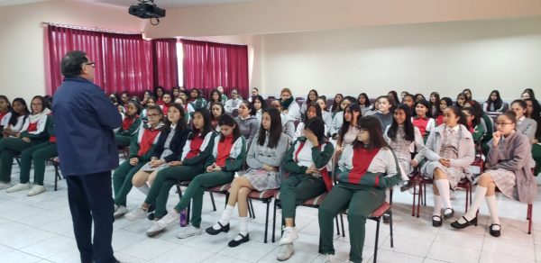 Este martes 14 de mayo se realizó a las estudiantes de 8º básico y 1º medio, una charla dictada por el Orientador de la Universidad de Tarapacá y Secretario del DEMRE profesor Victor Altamirano, para explicar en qué consiste el NEM (Notas de Enseñanza Media) y su importancia junto a la Prueba de Selección Universitaria (PSU) y el Ranking de Notas, para el proceso de admisión a las universidades chilenas.