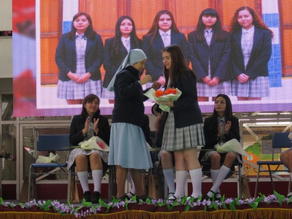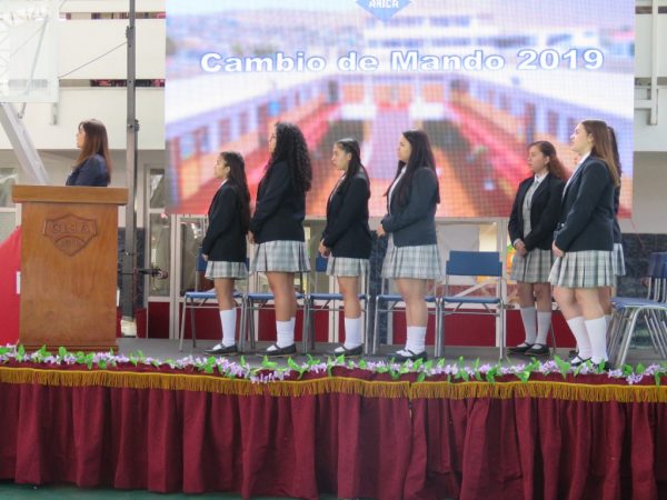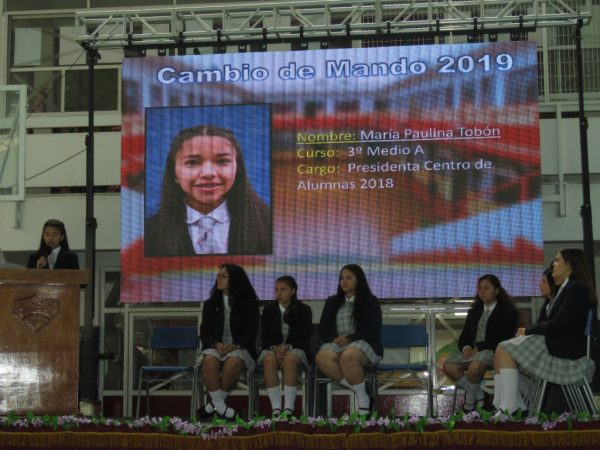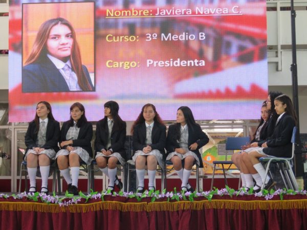 El pasado lunes 3 de junio se realizó la ceremonia del traspaso de mando del Centro de Alumnas de nuestro colegio en la cual tomó el cargo un nuevo equipo de alumnas presidido por Javiera Navea del 3º medio B. Se realizó un juramento y se entregaron regalos de estímulo y agradecimiento al Centro de Alumnas saliente y a la directa del establecimiento.