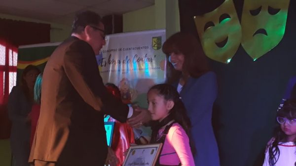 Acompañada de su profesora jefe, Gretel Mendizabal, la alumna Sabina Torres del 3º básico A tuvo una destacada participación en el Concurso Interescolar de Cuentacuentos organizado por el Colegio Leonardo Da Vinci y que se llevó a cabo en dicho establecimiento la semana pasada.