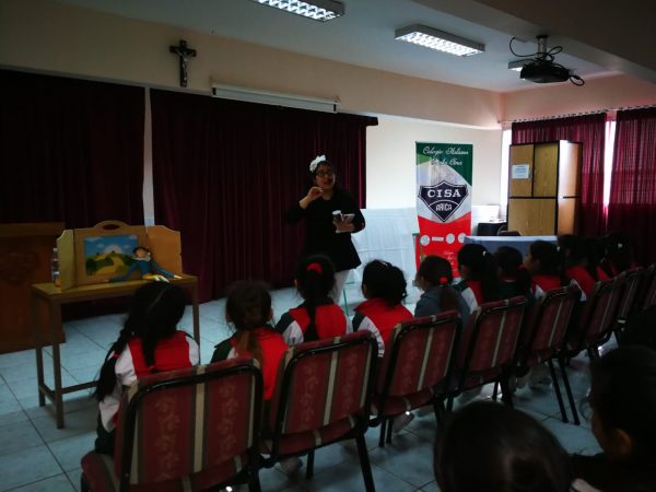Con la gestión de nuestro Equipo Psicosocial y COMSE, ayer lunes 26 de agosto nuestras alumnas de 1º y 2º básico recibieron la visita de la cuentacuentos “Amaya Tamayo”, quien a través de su narración entretuvo y educó a las pequeñitas sobre el manejo de sus emociones y el cuidado del cuerpo.