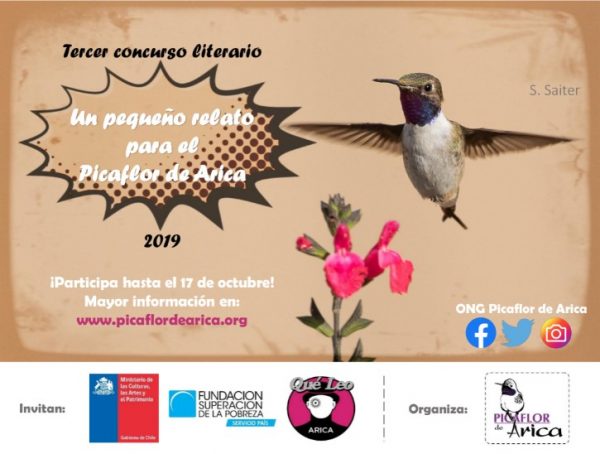 El pasado martes 27 de agosto el profesor Erick Leiva de la ONG Picaflor de Arica realizó una charla a las alumnas de 5º básico de nuestro colegio a través de la gestión de CRA y la profesora de ciencias Sofía Morales, con el motivo de informar y concienciar sobre la situación del picaflor de Arica, especie en peligro de extinción, y además promocionar el concurso literario de la misma temática.