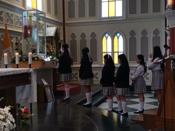 Ayer lunes 23 de Septiembre un grupo de nuestras alumnas de Enseñanza Media junto a otras delegaciones de colegios de iglesia despidieron en la Catedral San Marcos a la imagen de la Virgen de Fátima que acompañó distintas comunidades de nuestra ciudad durante estos días.
