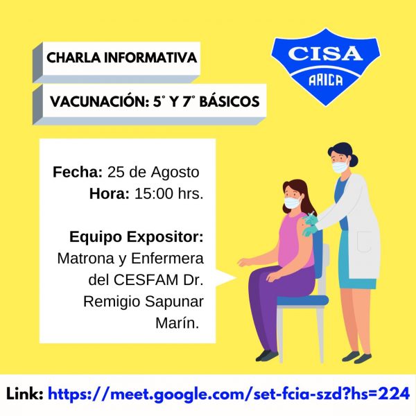 VPH 2da dosis: 5tos y 7mos básicosMiércoles 25 de agosto desde las 15:00 hasta las 16:00 horas.https://meet.google.com/set-fcia-szd?hs=224