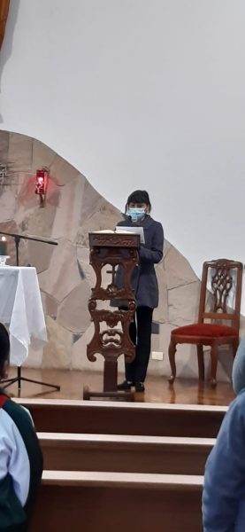 “Sus hijas tan queridas de los segundos básicos han venido a participar de su Santa Cena. En este día han querido presentar a sus familias, las cuales les han enseñado sobre ti. La fe que hoy tienen es gracias a ellos, por eso han pedido su inmensa misericordia, para que los cuides y protejas cada día. Dales salud, bienestar, paz para que siempre estén unidos a ti.”