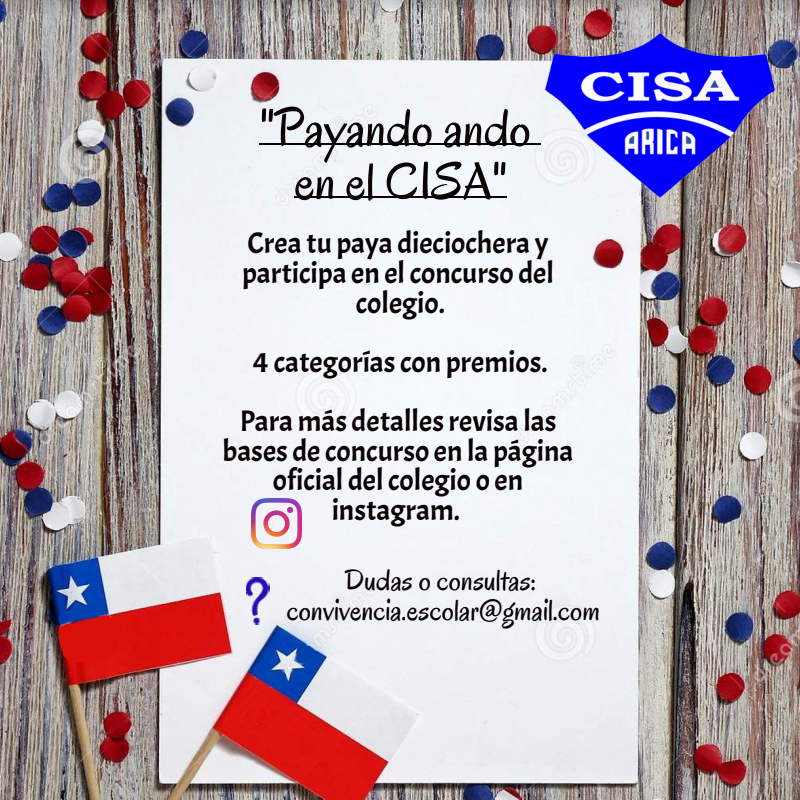 Para concursar, los y las participantes deberán grabar un video con sus payas y enviarlas al correo convivencia.escolar@cisa-arica.cl , los que serán presentados para su posterior evaluación y selección. Las payas pueden ser recitadas rítmicamente a través de una pista, instrumento o a capella. Los y las participantes pueden presentar un máximo de 2 payas. Para más indicaciones, por favor revisar nuestras Bases.