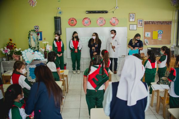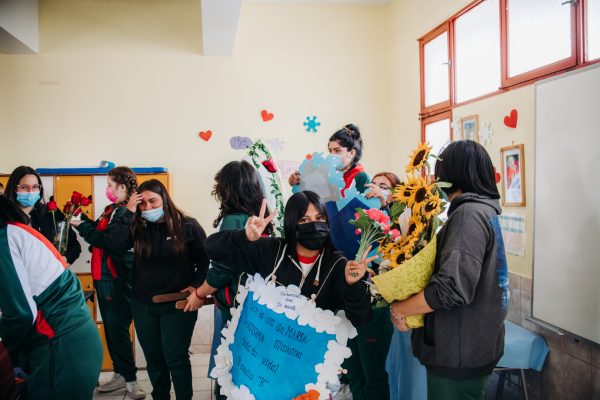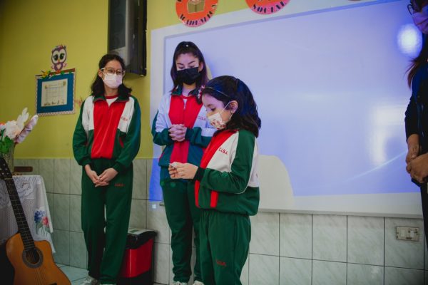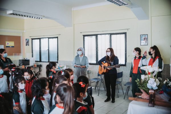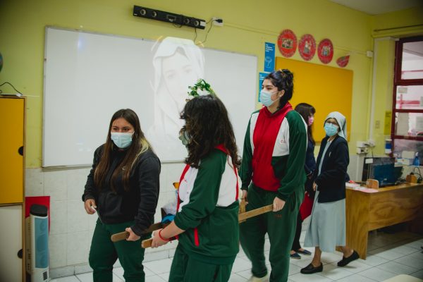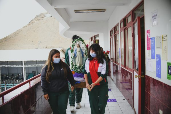 La semana pasada nuestros cursos continuaron recibiendo a la Virgen Peregrina en sus salas de clases, el Martes 09 de noviembre las estudiantes de Educación Parvularia se dirigen al Tercero Medio B, cantando con alegría y pidiendo a la Virgen por sus seres queridos: “Regalamos Madre un Corazón abierto y generoso, para que cada día digamos Sí al querer de Dios”.