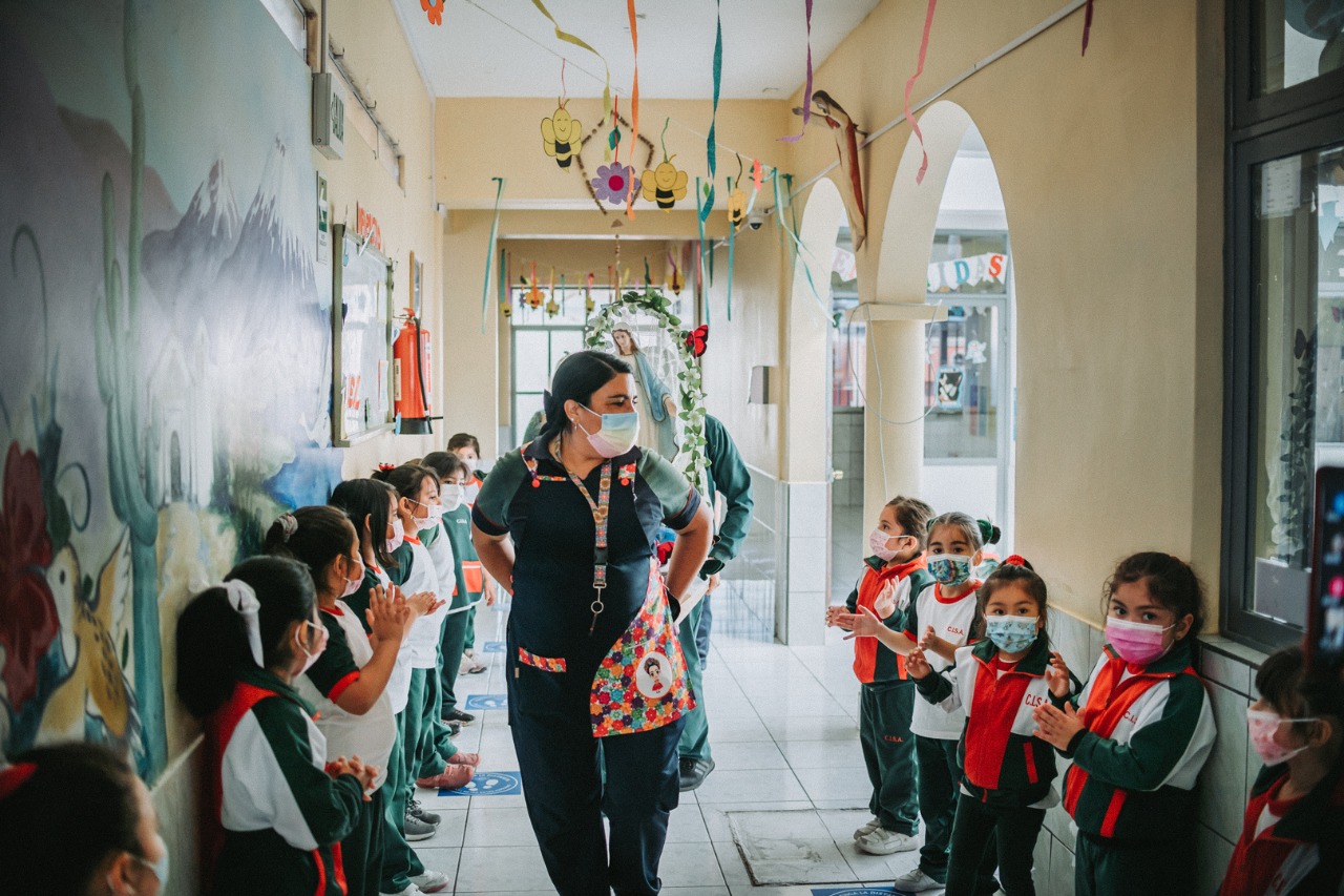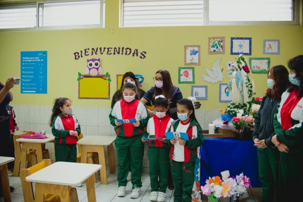 Continuando con el Miércoles 10 de noviembre, las estudiantes de 3° Medio B entre cantos y oraciones se dirigen al 1° Básico B junto a la Virgen Peregrina de la Esperanza: “Te encomendamos Madre, a nuestro pastor, el papa Francisco. Cuida de su salud, fortalecerlo en su difícil tarea y regálale la sabiduría de Dios para guiar a la Iglesia”.