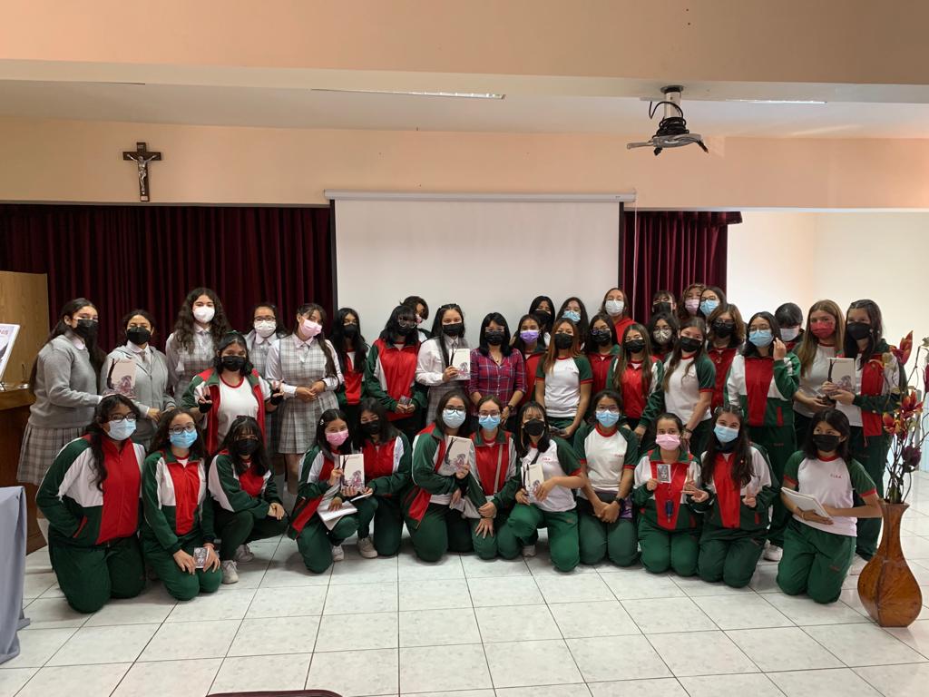 Siguiendo con las actividades realizadas por el Día del Libro, recibimos la visita de la escritora local y ex alumna de nuestro colegio, Alejandra Palacios, quien realizó ayer un conversatorio con estudiantes de 3os y 4os medios. En esta actividad, organizada por CRA con el Patrocinio de la Seremia de las Culturas, Artes y Patrimonio, la autora explicó su proceso como escritora independiente y la motivación detrás de sus obras, principalmente el libro “Shuvanis”, el cual se encuentra dentro de nuestro Plan Lector de 3os medios. Esta actividad finalizó con una sesión de autógrafos y un pequeño cóctel donde se hicieron partícipes Alejandra y el Coordinador Regional del Fomento de las Artes e Industrias Creativas, Sr. Mijail Poblete, la directiva del establecimiento y nuestro Dpto. de Lenguaje y Comunicación.