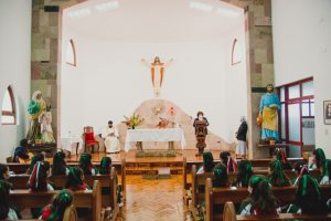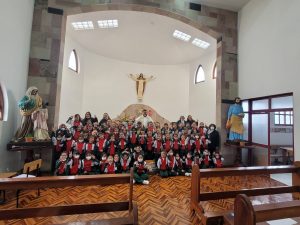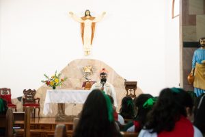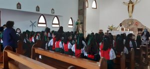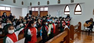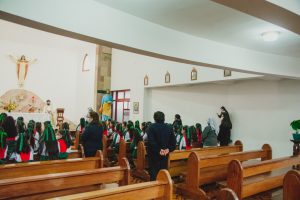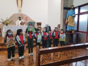 Nos unimos como comunidad para rezar por nuestras familias. Dando gracias por el don de la vida y poniendo en las manos de Dios todas nuestras necesidades. Iniciamos nuestras misas con la participación de los Primeros Básicos junto a sus profesoras y tías técnicos.