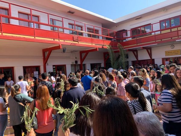 Después de cuatro años, nuestro colegio abrió las puertas un día domingo para celebrar Domingo de Ramos junto a las familias de la comunidad. La misa fue precedida por el padre Mario Maldonado y el diácono Héctor Rauld. Fue una hermosa mañana para recibir a Jesús con cantos y en unión familiar junto a las Hermanas de la Congregación.